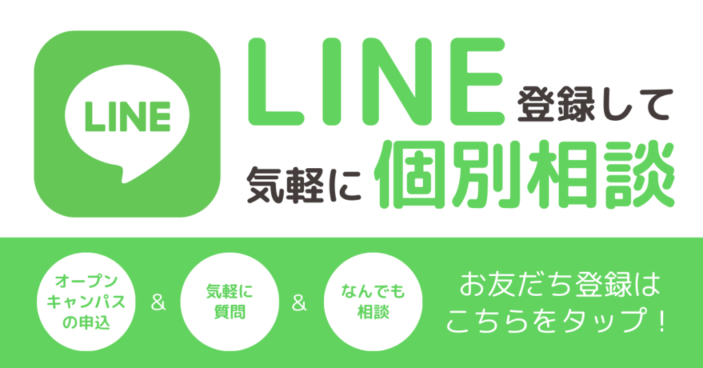 トーク画面で「オープンキャンパス」と送信するとお申込みできます!